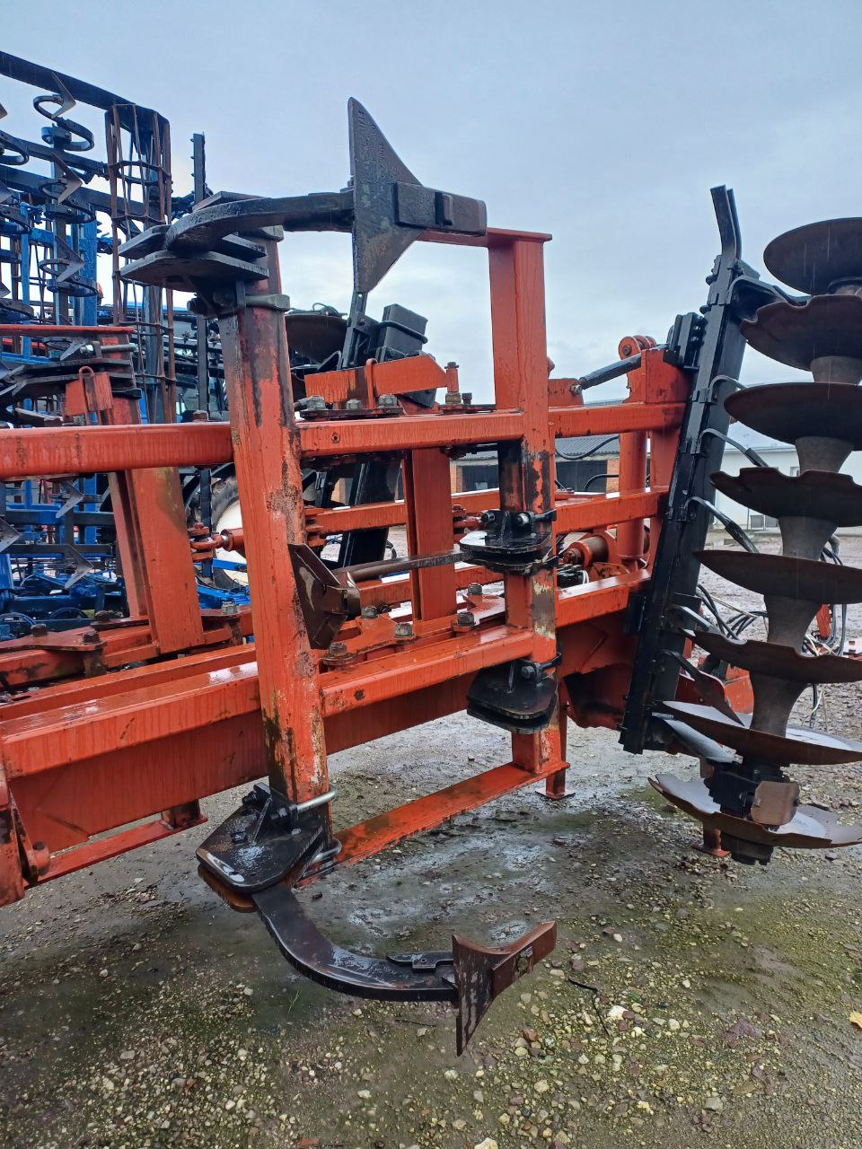 - Лапова секція: Розпушувальні лапи, розташовані за дисками, для руйнування підошви та глибокого розпушення.