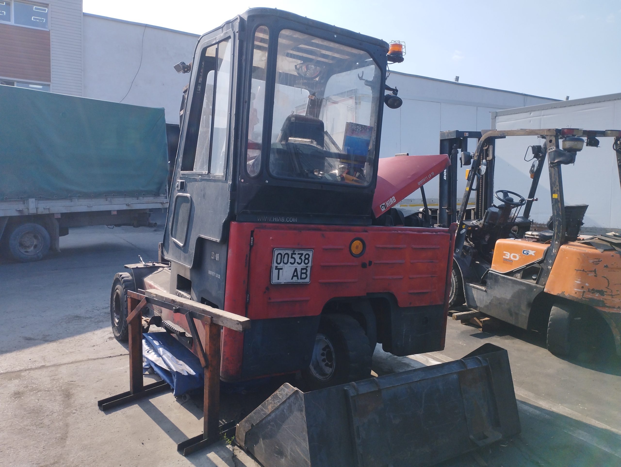 Навантажувач Moffett-RL35.3 (2012 р.в.) — це ірландський 3-колісний дизельний візковий навантажувач, призначений для монтажу на задній частині вантажівки. Основні характеристики: вантажопідйомність до 3,5 тонн, привід на одне колесо, триколісна конструкція для високої маневровості, розроблений для швидкої роботи, часто використовується в складних умовах.